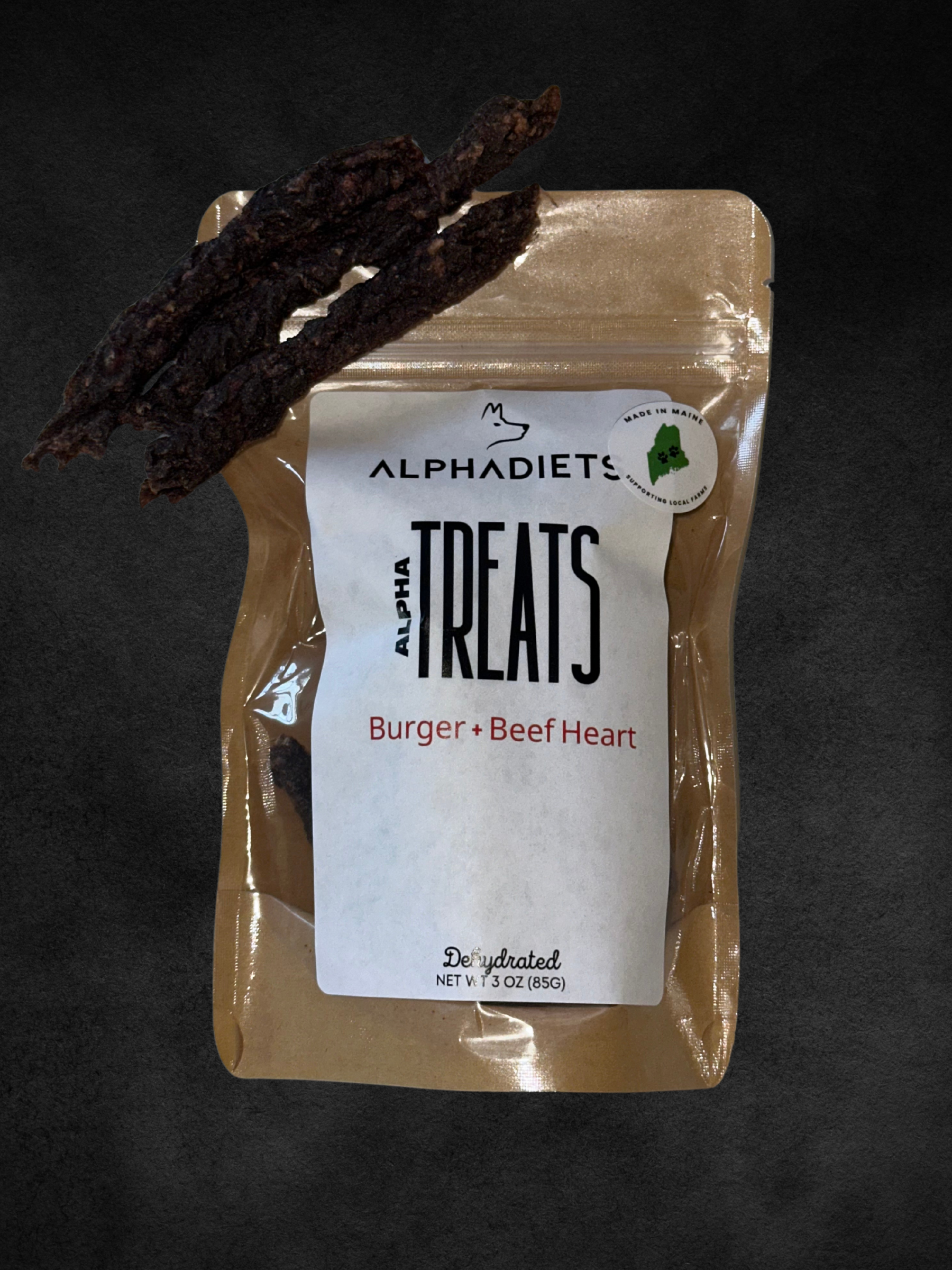 Treat your dog to the best with our Natural Burger and Beef Heart dog treats, lovingly crafted in a 3.0 oz package. Sourced from local family farms, we ensure the highest quality ingredients for your pet's enjoyment and health. Each treat is carefully dehydrated to preserve nutrients and flavor, providing a wholesome snacking option that your dog will love.